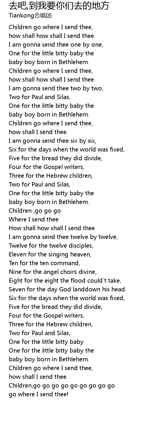 去吧,到我要你们去的地方 qu ba, dao wo yao ni men qu de di fang Lyrics