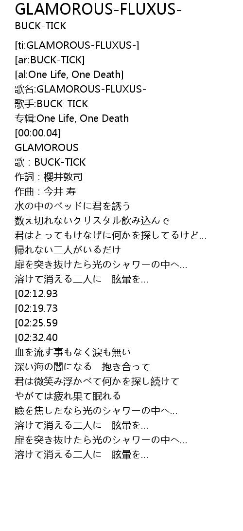 | [00:06.65] | 歌:BUCK-TICK |