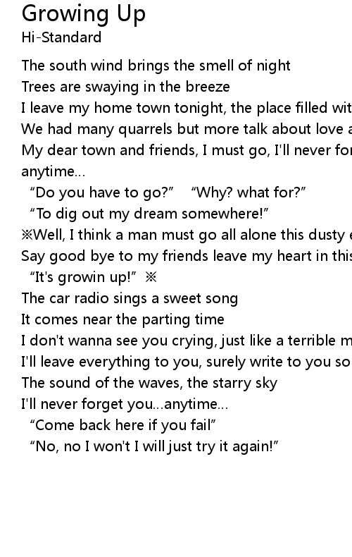 | Song | Growing Up |