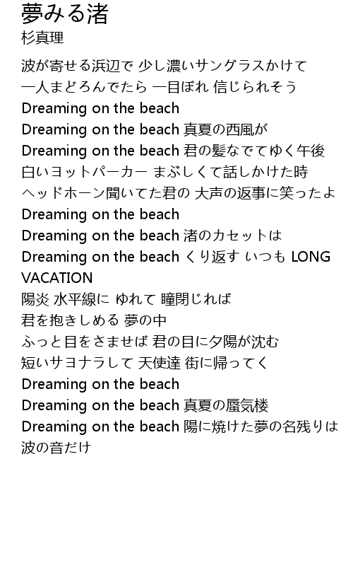 | Dreaming on the beach くり返す いつも LONG | |