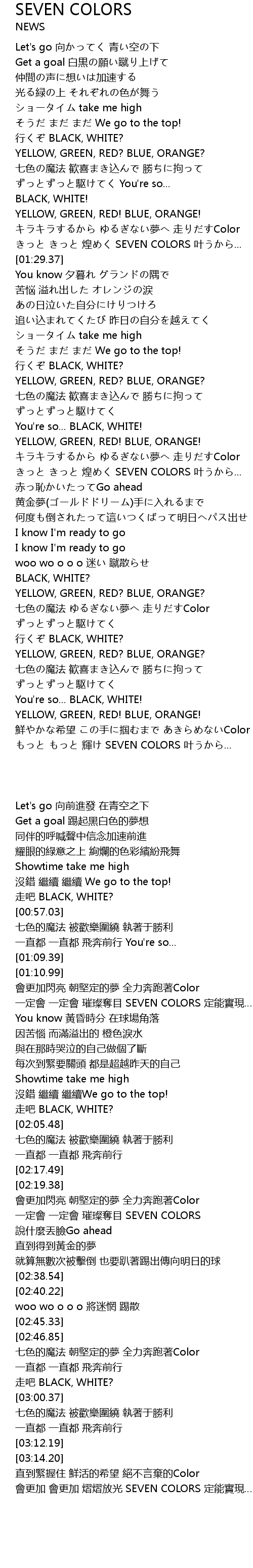 | [03:23.10] | もっと もっと 輝け SEVEN COLORS 叶うから... |