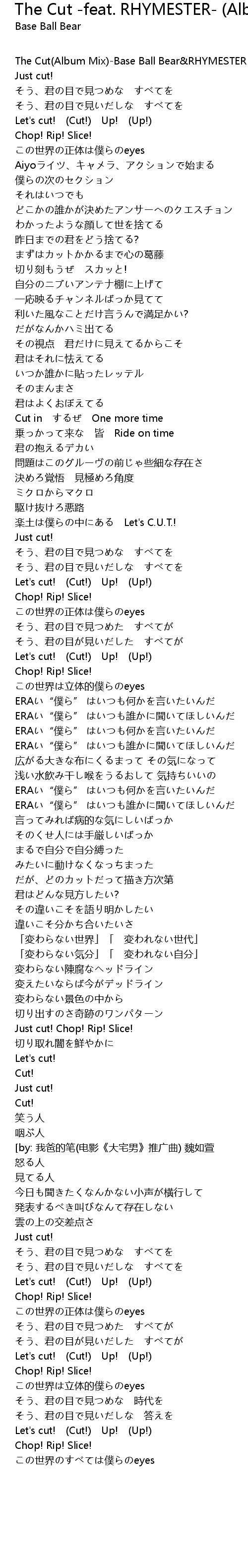 | [00:01.67] | The Cut(Album Mix)-Base Ball Bear&RHYMESTER |