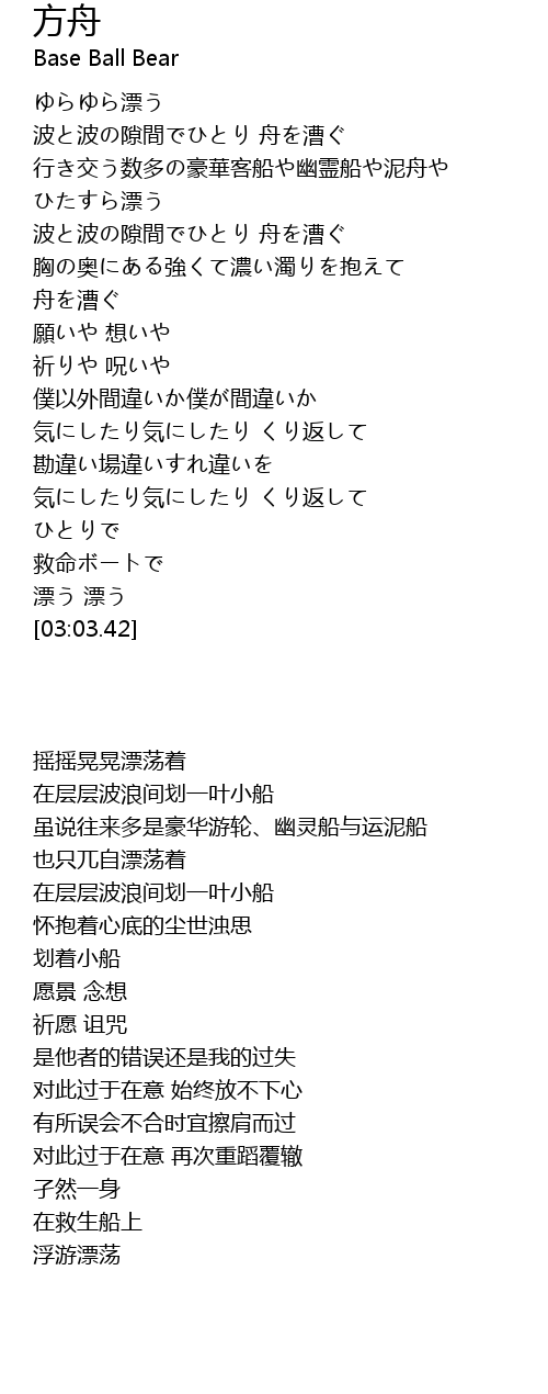 | [00:53.55] | 波と波の隙間でひとり 舟を漕ぐ |