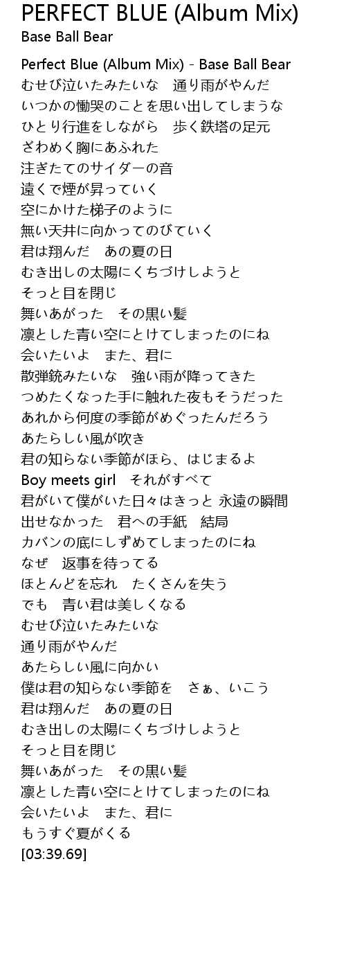 | [00:02.72] | Perfect Blue (Album Mix) - Base Ball Bear |