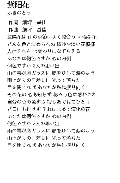 | [01:15.201] | 何色ですか 2人の思い出 |