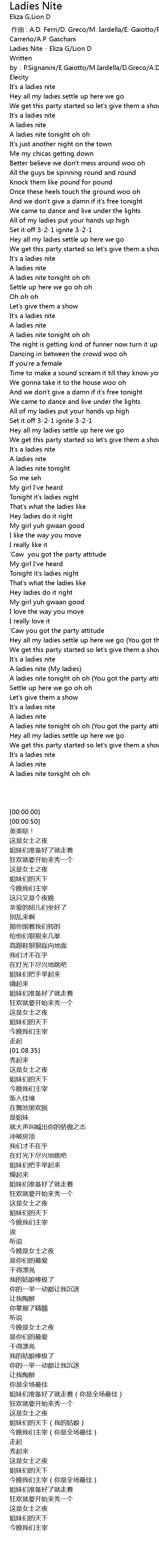 | [00:00.00] | Ladies Nite Eliza G Lion D |