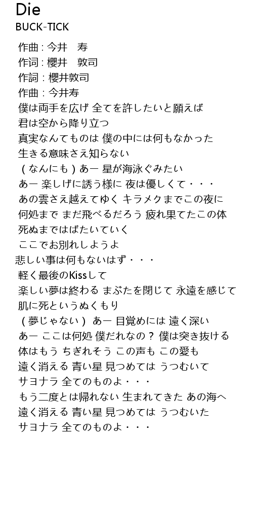 | [00:06.760] | 作詞:櫻井敦司 |