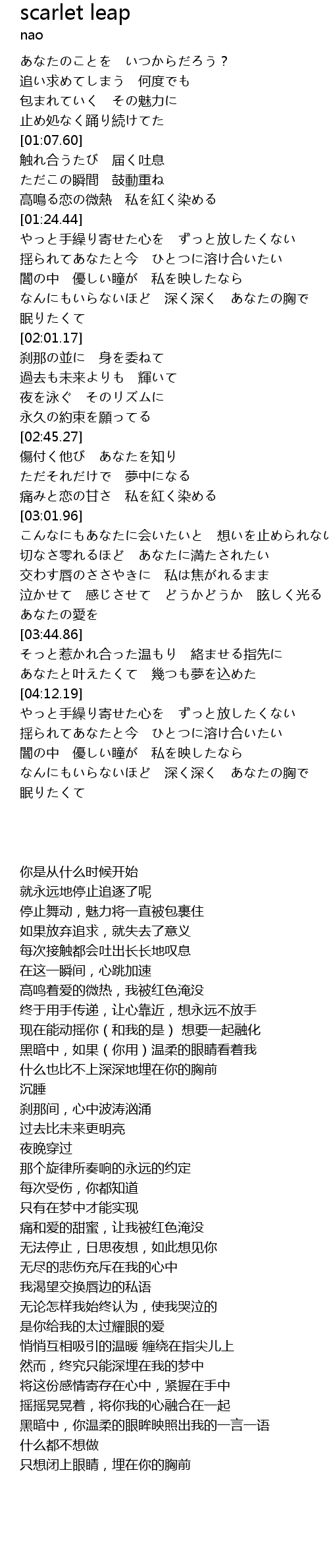 | [02:54.13] | 痛みと恋の甘さ 私を紅く染める |