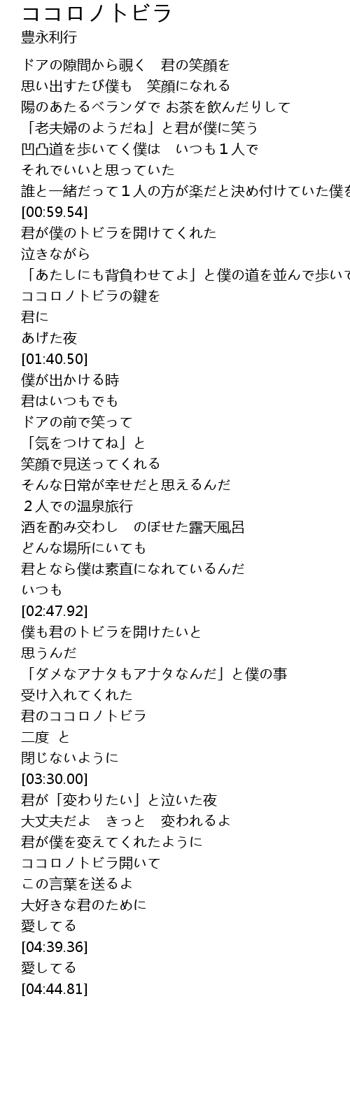 | [01:02.49] | 君が僕のトビラを開けてくれた |