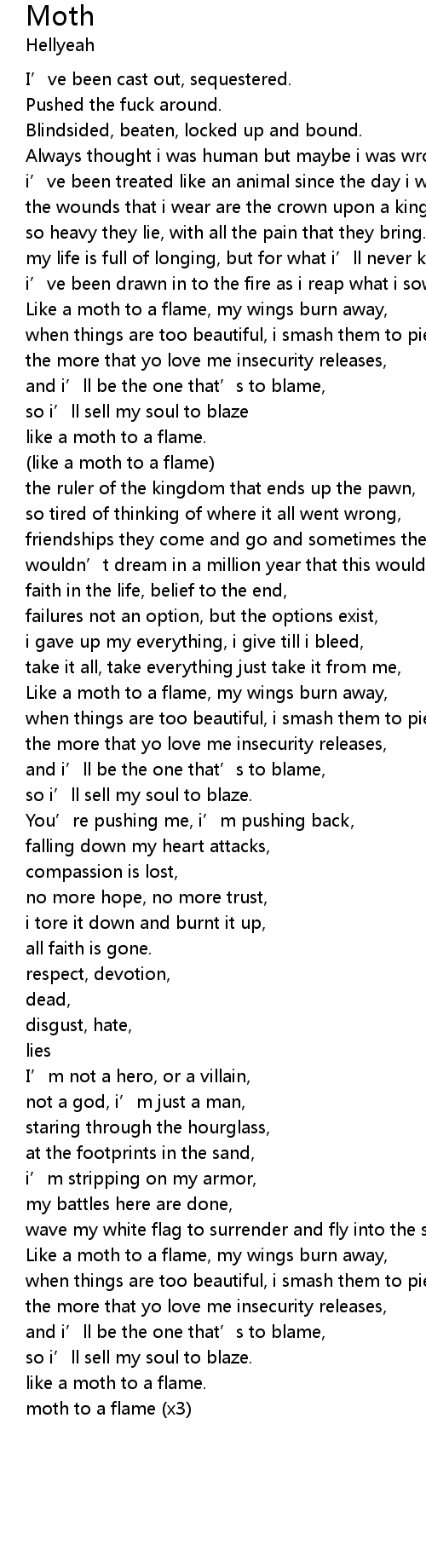 | i' ve been drawn in to the fire as i reap what i sow. | |