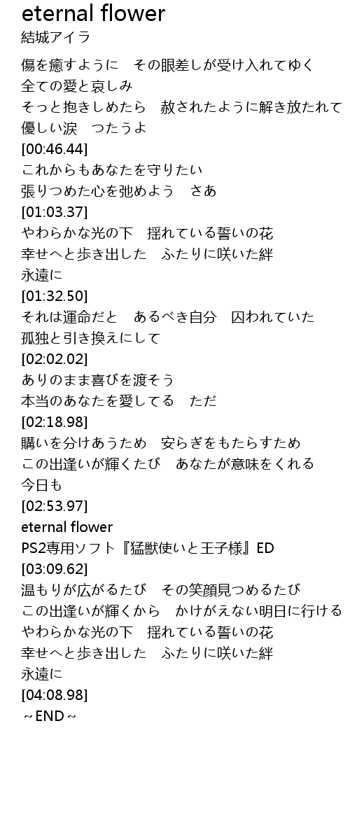 | [02:58.64] | PS2専用ソフト『猛獣使いと王子様』ED |