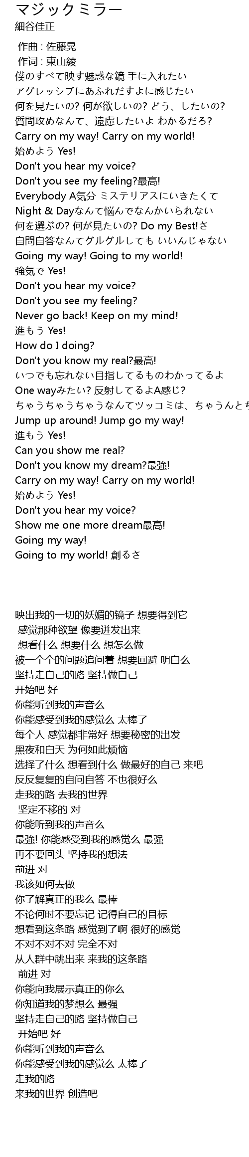 | [00:26.56] | 僕のすべて映す魅惑な鏡 手に入れたい |