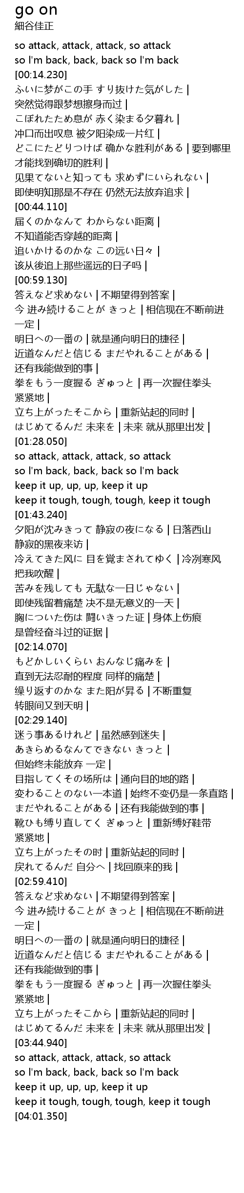 | [01:40.510] | keep it tough, tough, tough, keep it tough |