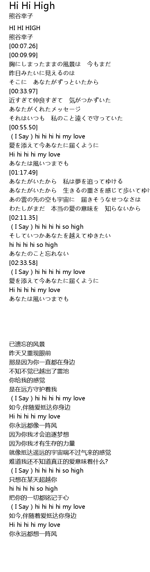 | [02:11.57] | (I Say)hi hi hi hi so high |