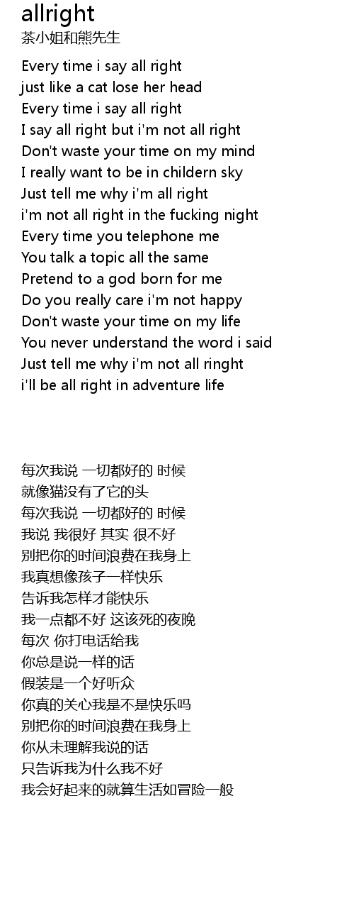 | [00:12.20] | Every time i say all right |