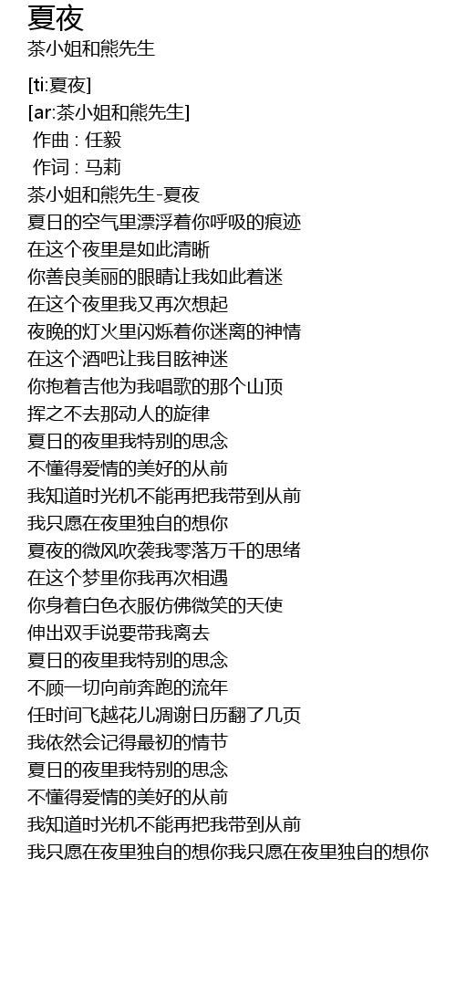 | [00:00.642] | 茶小姐和熊先生-夏夜 |