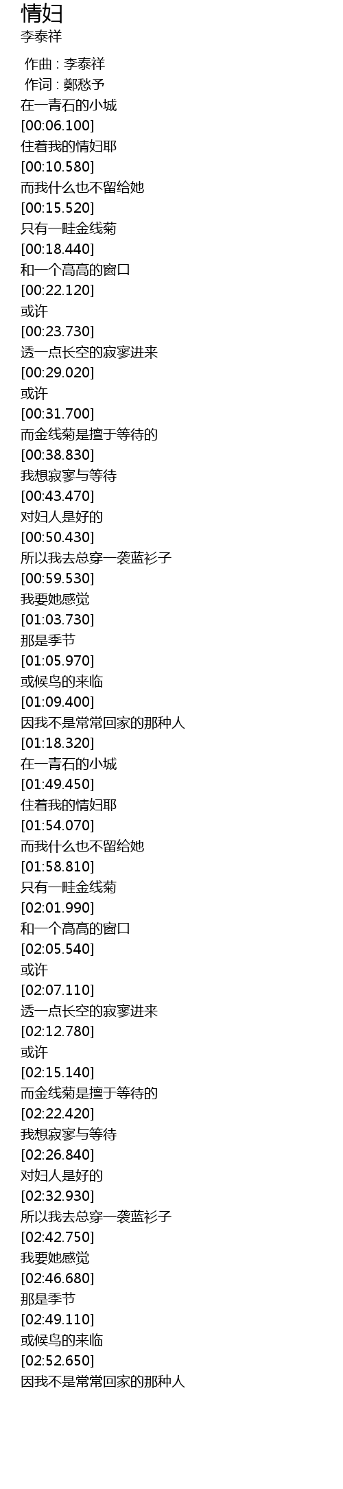 | [00:00.00] | 作曲 : 李泰祥 |