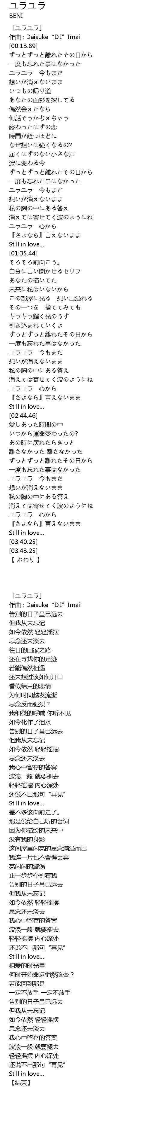 | [03:29.44] | ユラユラ 心から |