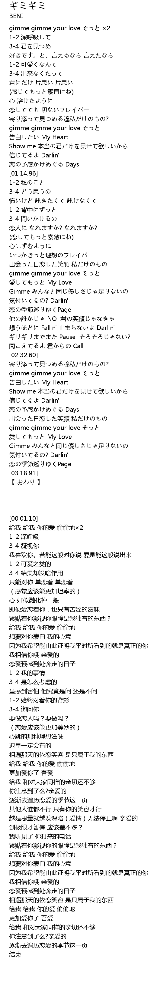 | [00:07.10] | gimme gimme your love そっと ×2 |