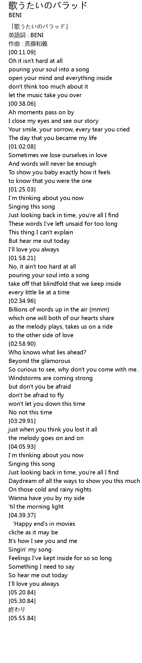 | [00:05.09] | 英語詞∶BENI |