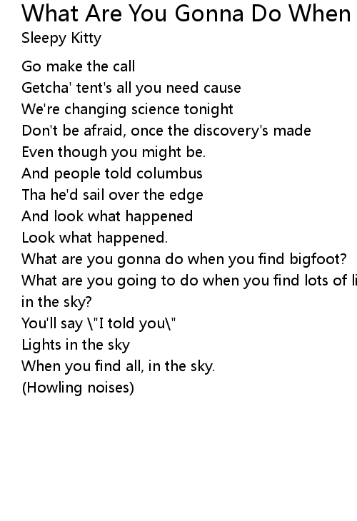 | Song | What Are You Gonna Do When You Find Bigfoot? |