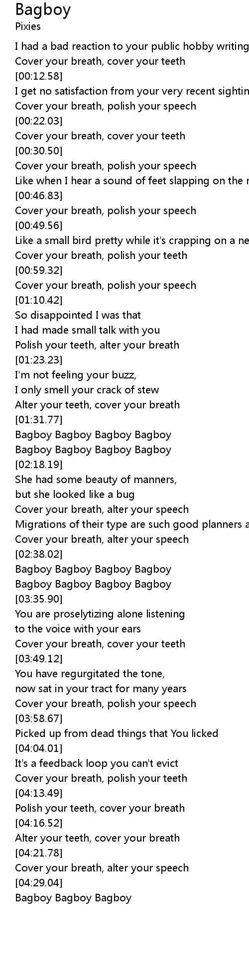 | [03:18.09] | Bagboy Bagboy Bagboy Bagboy |