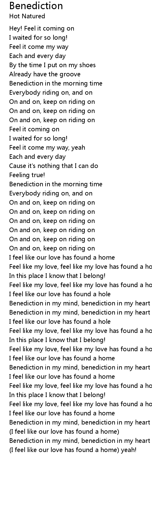 Benediction in my mind, benediction in my heart and soul! |