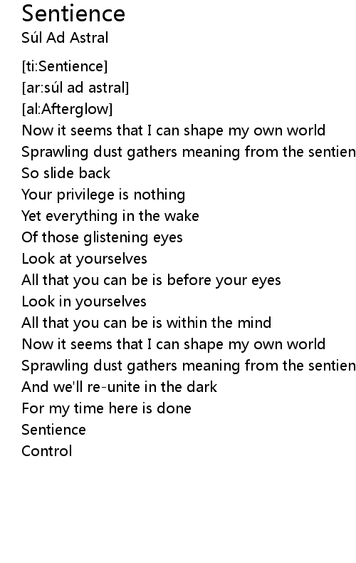| [00:33.01] | Sprawling dust gathers meaning from the sentient one |