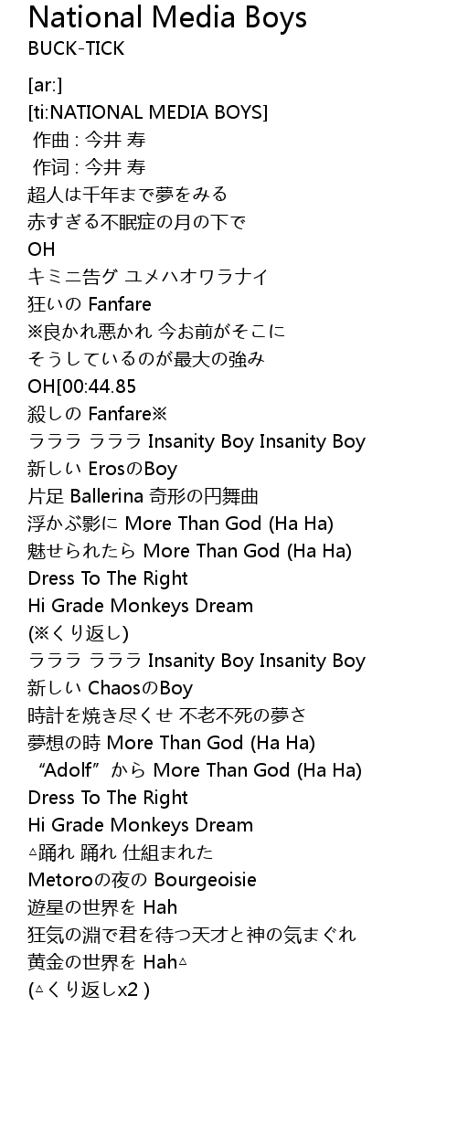 | [00:53.84] | ラララ ラララ Insanity Boy Insanity Boy |