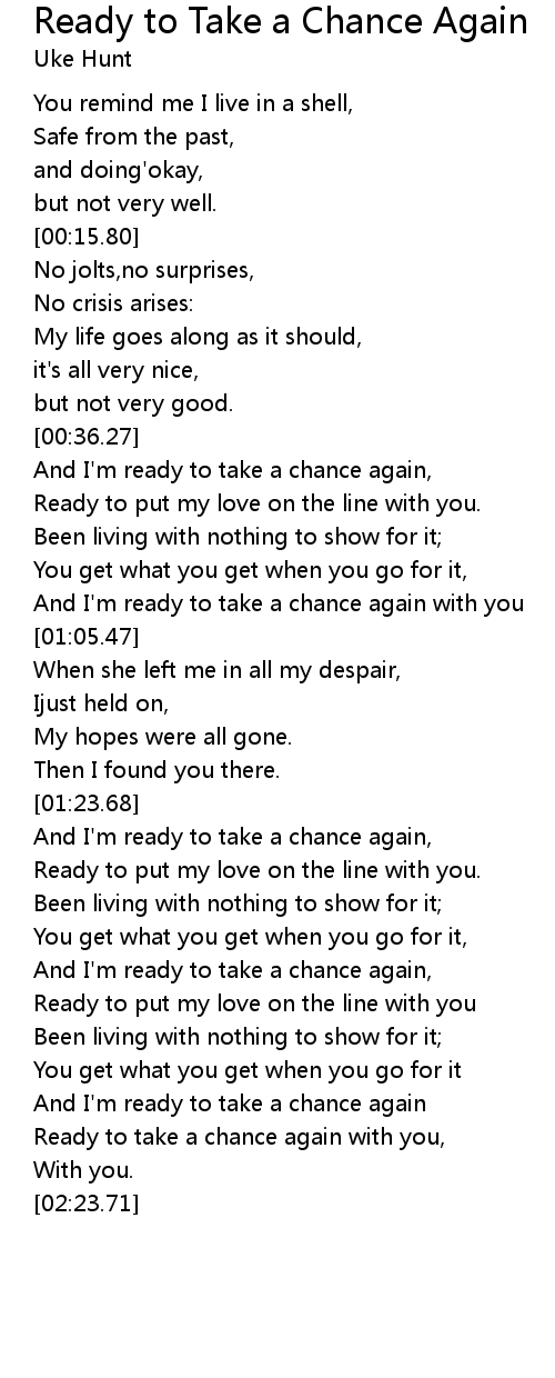 | [00:58.78] | And I'm ready to take a chance again with you |