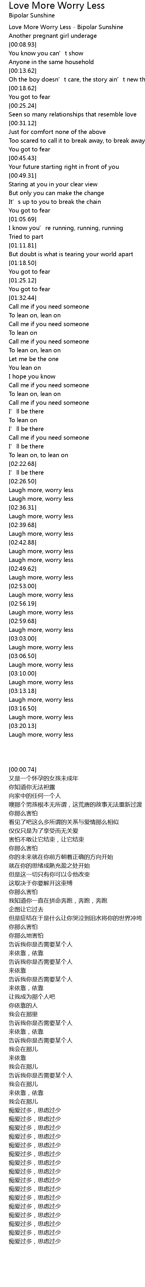| [00:00.74] | Love More Worry Less - Bipolar Sunshine |