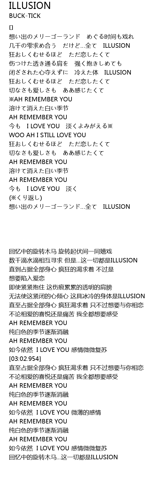 | 几千の雫求め合う だけど…全て ILLUSION | |