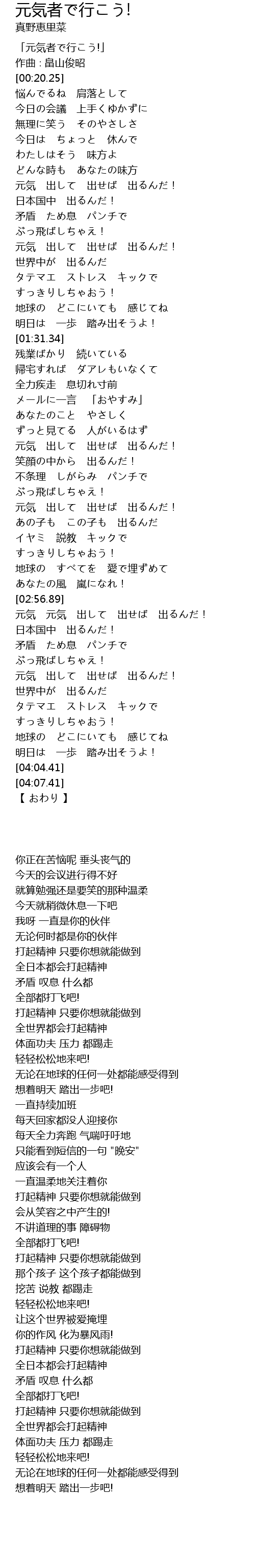 | [00:01.25] | 「元気者で行こう!」 |
