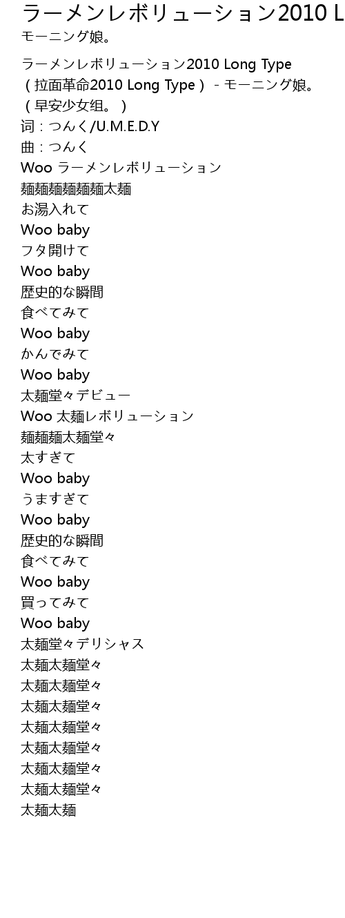 | [00:00.100] | ラーメンレボリューション2010 Long Type (拉面革命2010 Long Type) - モーニング娘。 (早安少女组。) |