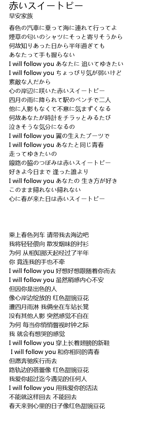 | [02:39.67] | I will follow you shēng fāng hǎo |