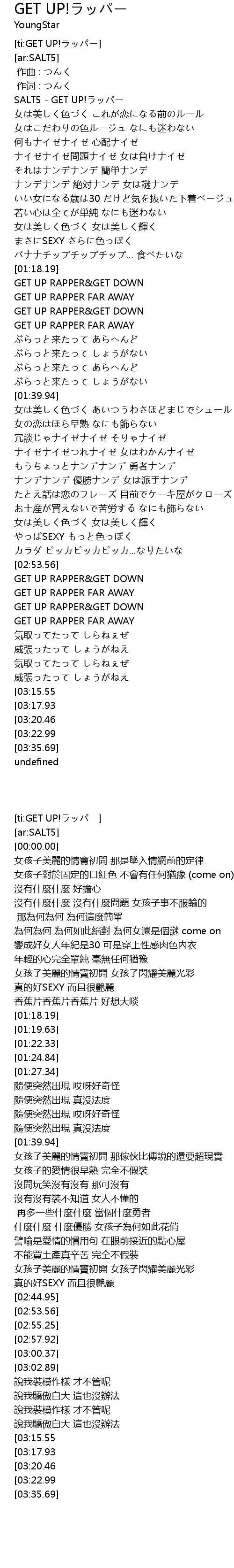 | [03:00.37] | GET UP RAPPER GET DOWN |