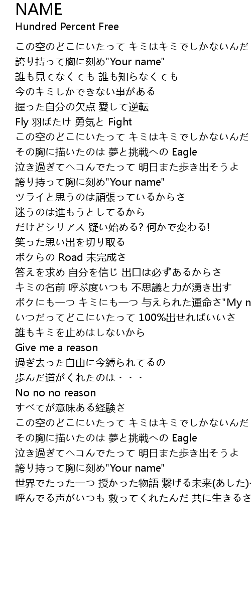 | 呼んでる声がいつも 救ってくれたんだ 共に生きるさ NAME |