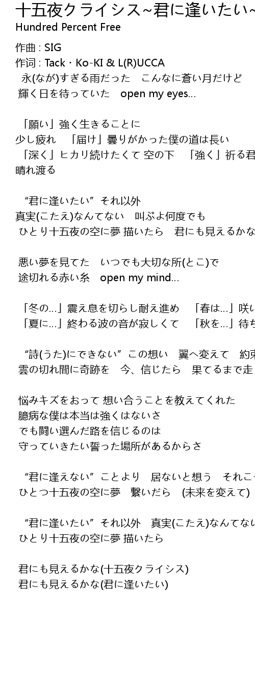 | Album | 十五夜クライシス~君に逢いたい~(Hundred Percent Free盘) |