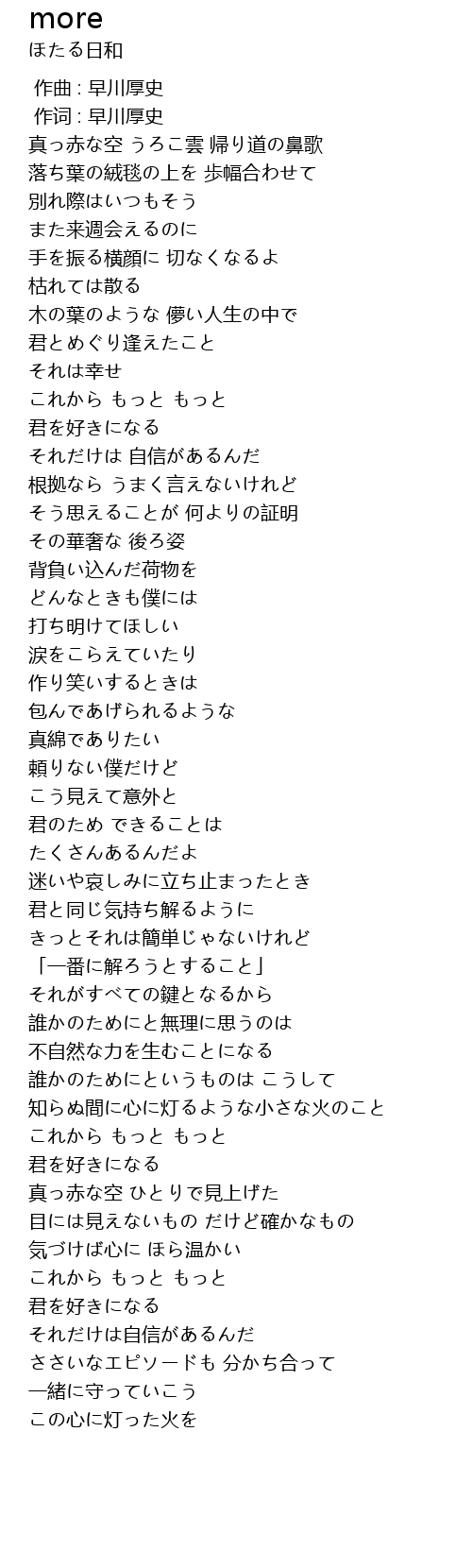 | [00:23.24] | 落ち葉の絨毯の上を 歩幅合わせて |