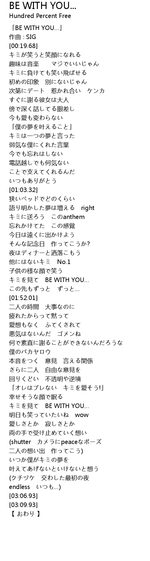 | [00:01.68] | 「BE WITH YOU…」 |