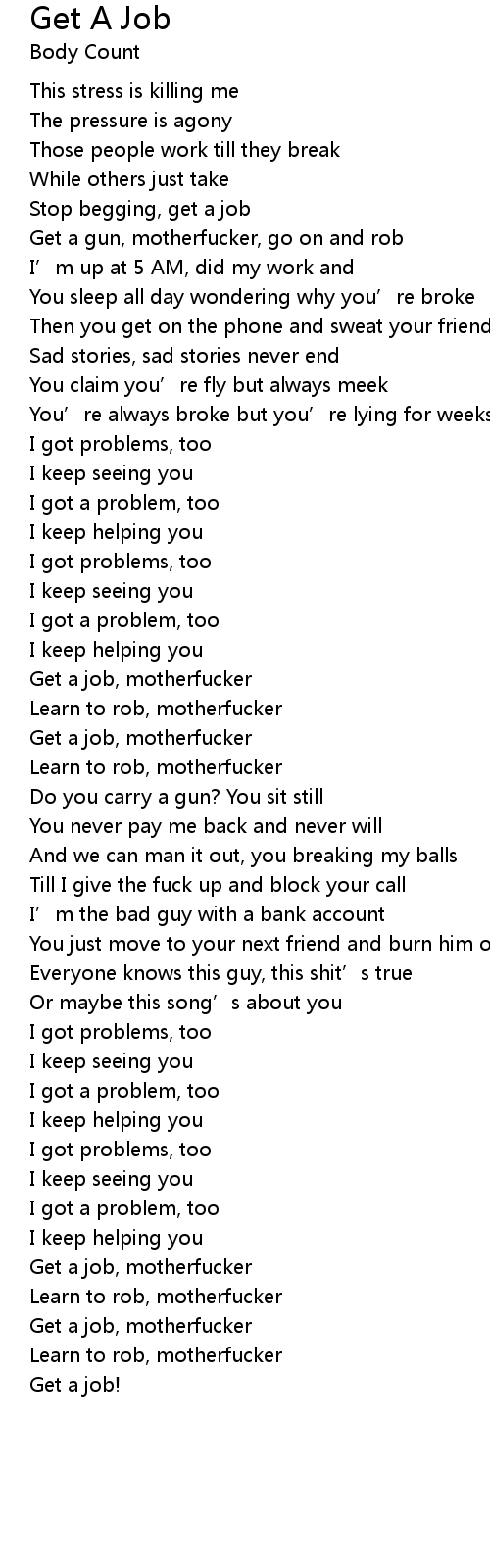 | Get a job, motherfucker | |