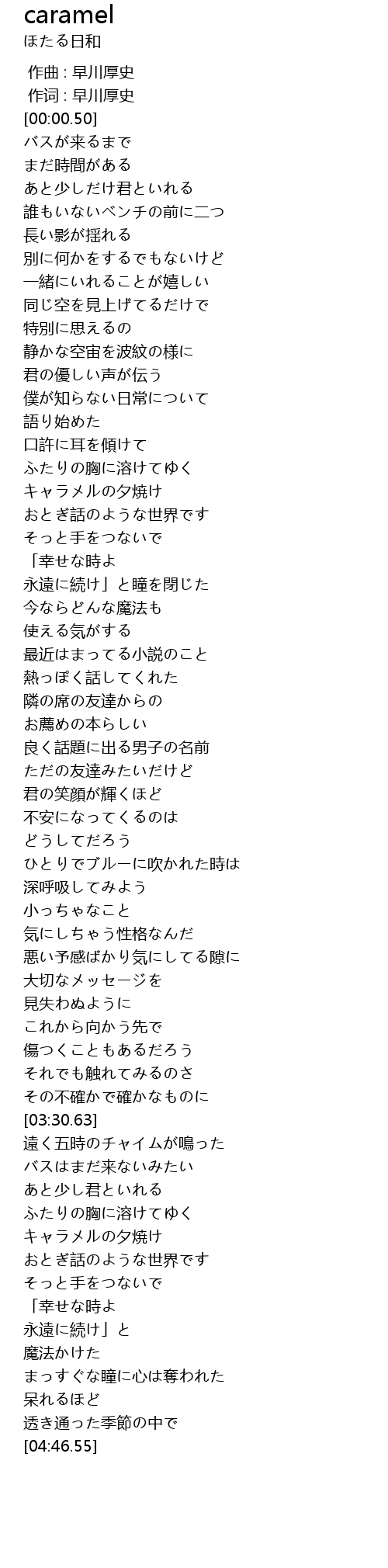 | [04:04.11] | ふたりの胸に溶けてゆく |