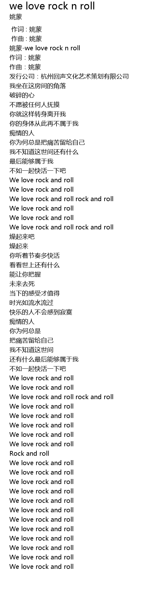 | [00:00.519] | 姚蒙-we love rock n roll |