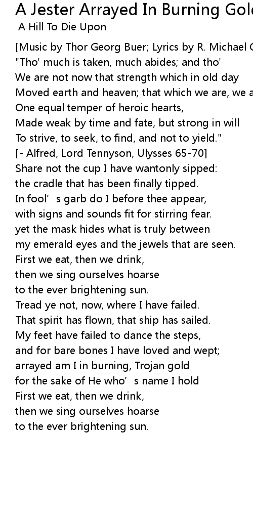 | Song | A Jester Arrayed In Burning Gold |