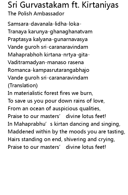 | Song | Sri Gurvastakam ft. Kirtaniyas |