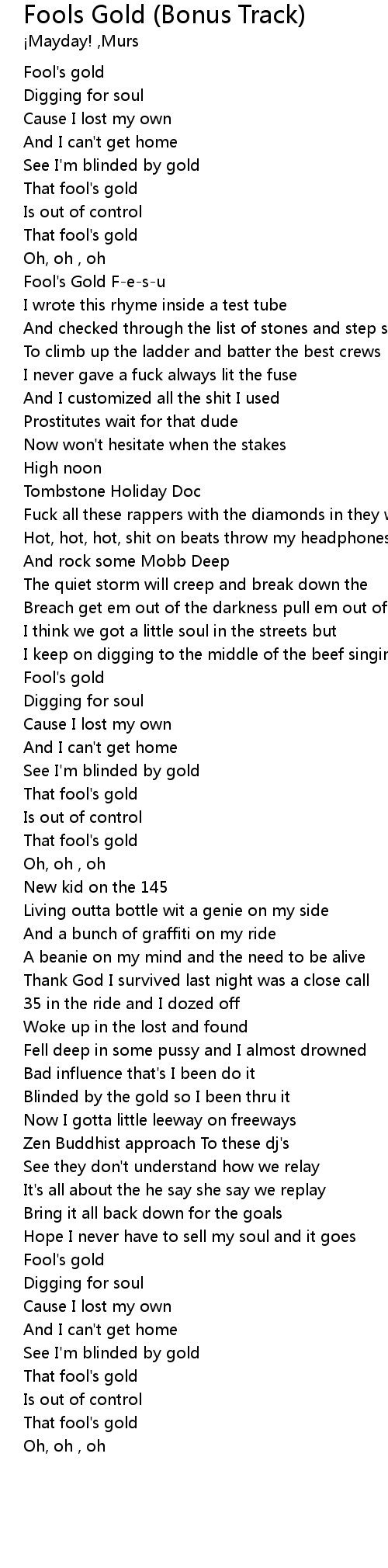 | [00:43.53] | Fool's Gold F-e-s-u |