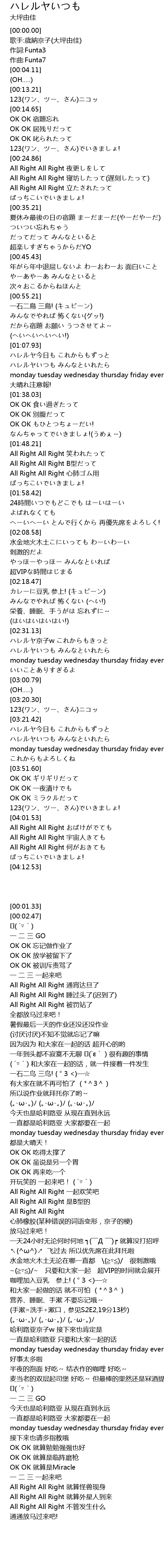 | [03:31.52] | ハレルヤいつも みんなといれたら |