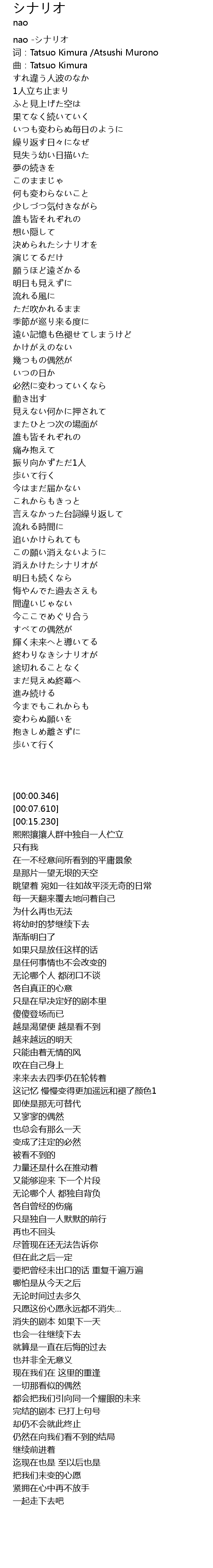 | [00:15.230] | 曲:Tatsuo Kimura |