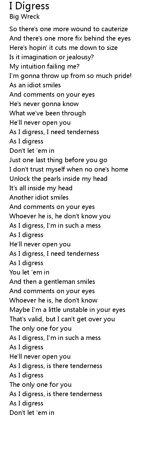 | As I digress, I'm in such a mess | |