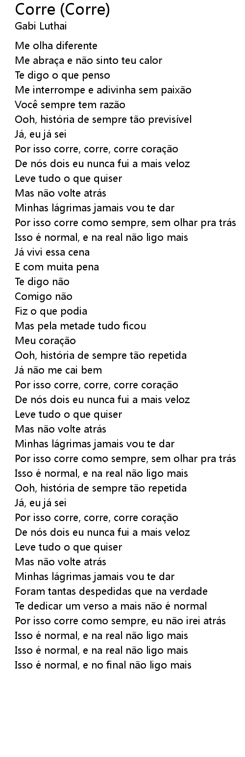 | Por isso corre como sempre, sem olhar pra trá s | |